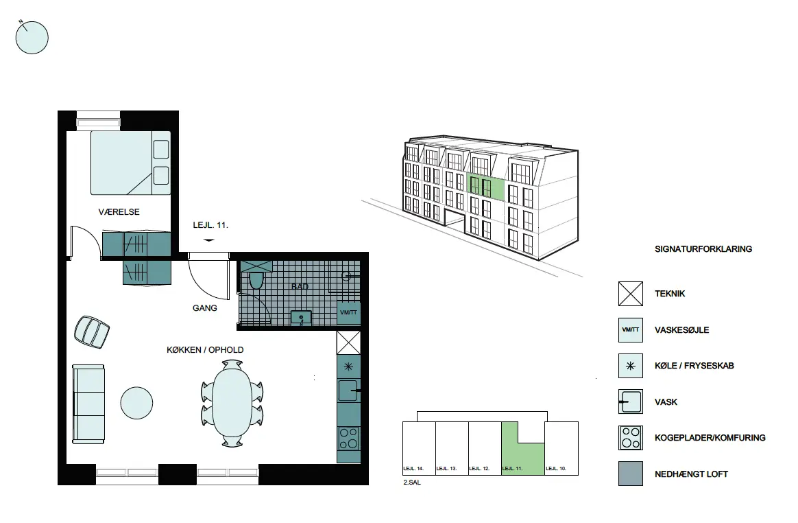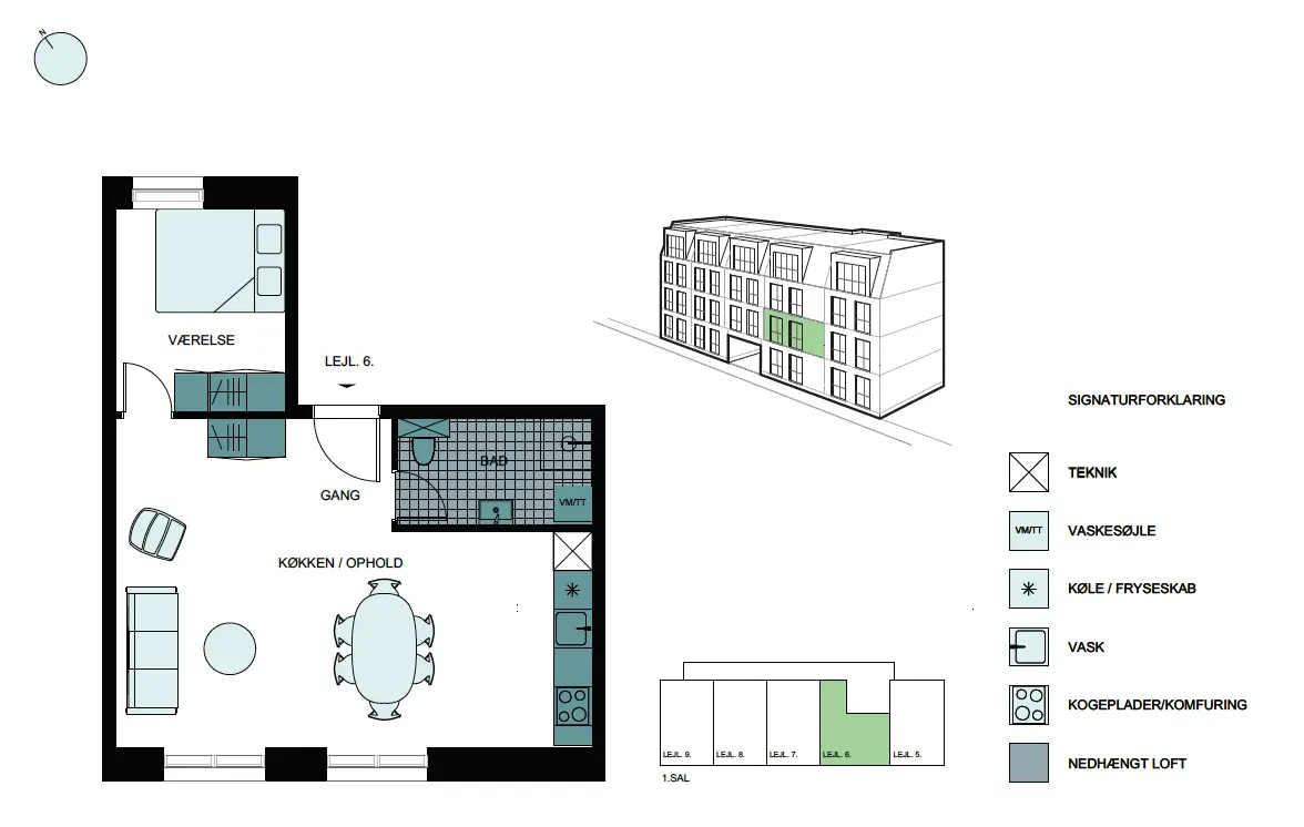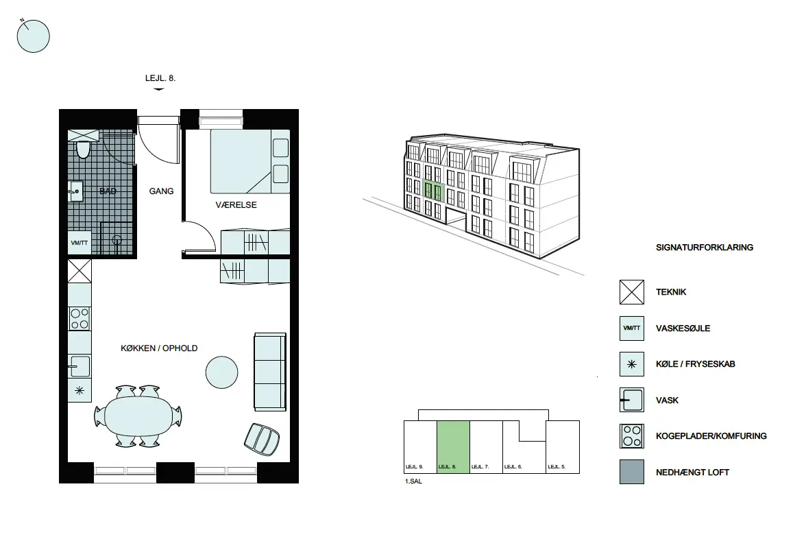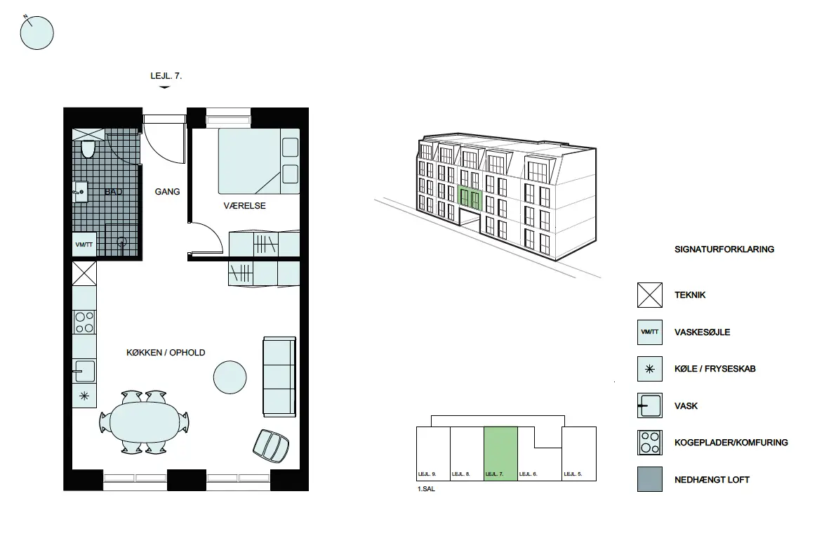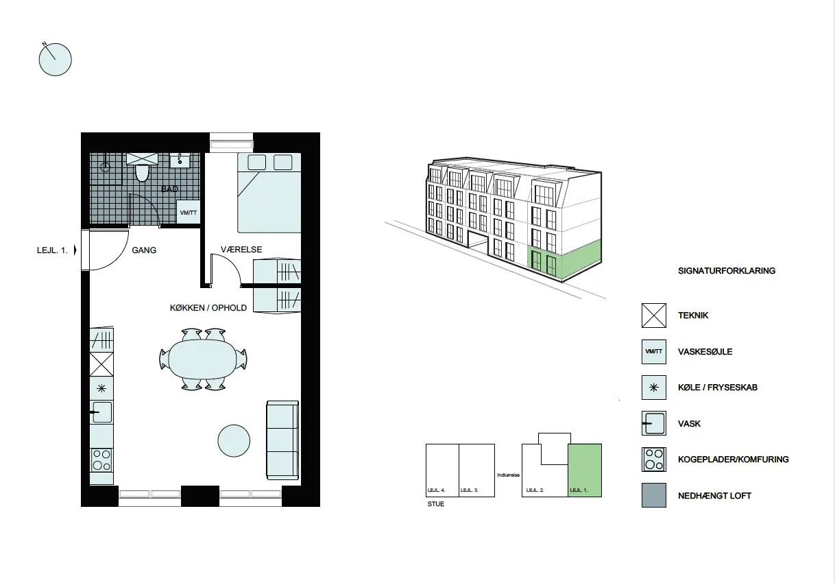Ejendommen på Nygade rummer lyse og moderne lejligheder, der især henvender sig til singler eller par, som ønsker at bo centralt og komfortabelt.